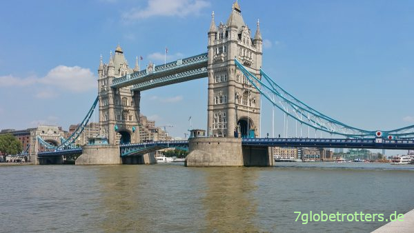 Die nächste große Sehenswürdigkeit ist die Tower Bridge, beziehungsweise aufgrund der Londoner Hitzewelle der mobile Eisstand an der Tower Bridge.