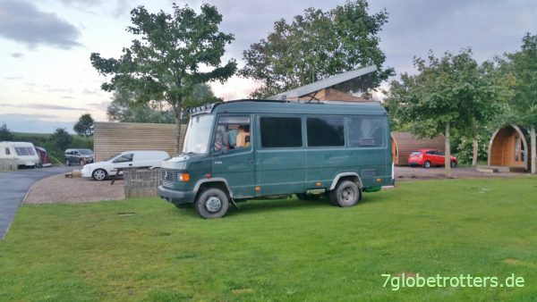 Eigentlich hatte ich ja einen wilden Stellplatz am Leuchtturm von St. Abbs anvisiert, aber durch die limitierte Verfügbarkeit von Diesel und die fortgeschrittene Zeit wollte ich im unbekannten Gelände nicht lange herumsuchen. Also nahmen wir schon in Coldingham einen „richtigen“, allerdings in keiner Karte verzeichneten Zeltplatz in Beschlag.