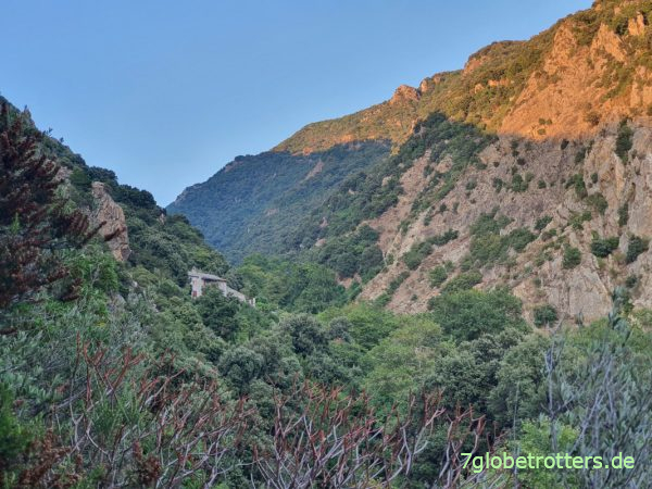 Erst als die Sonne weg ist, starten wir wieder hoch zum Kloster.
