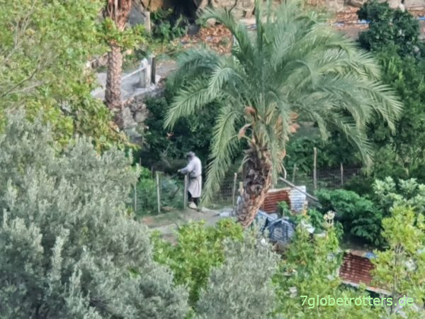 Aber die Klosterwerkstatt ist immer offen und gastfreundlich. Heute sogar mit Abschiedsgeschenk mit Honig, Olivenöl und Marmelade. Und einem Beutel Kräutern, bei denen ich aber vergessen habe, ob ich die in den Salat oder den Tee machen soll.