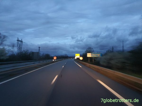 5:56 Uhr. Rheinbrücke. Der erste Regelverstoß, denn wir sind 4 Minuten zu zeitig in Frankreich. Aber hier ist um diese Uhrzeit so gut wie überhaupt niemand. Liegt das nun an der Ausgangssperre oder an der frühen Stunde?