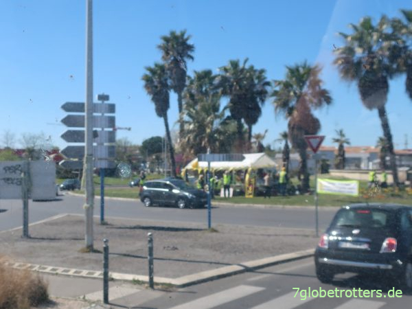 Weiter keine Kontrollen. Vielleicht schaffen wir es ja tatsächlich. Die Jungs fangen schon an, mit Atlas und Wild-Swimming-Buch für Spanien Reiseziele rauszusuchen. Weil ich die Gelbwesten für ein gutes Zeichen halte, traue ich mich in Montpellier dann doch mal zum Tanken in die Stadt. Besser man hat, als man hätte.