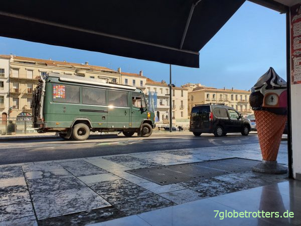 Die Franzosen gucken zwar komisch, freuen sich aber scheinbar, dass die ersten Touristen zurück sind. Und die Jungs sind begeistert von den riesigen Eisportionen. Endlich wieder mal Eis aus einer richtigen Eisdiele, auch wenn ich noch etwas unsicher bin und mich nur alleine reintraue.