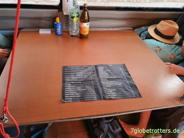 Auf dem Rückweg sehen wir, dass das Restaurant jetzt geöffnet hat. Wir könnten uns ja coronagerecht was bestellen und mit rausnehmen. Hole also die Karte und dann übersetzen wir alle zusammen die Speisen.