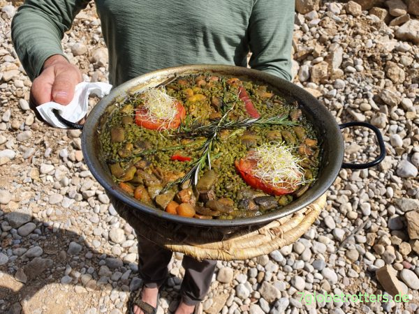 Das war die kleinste verfügbare Paella. Aber vier Personen, das kommt hin. Allerdings kenne ich da einen Ort, wo schon wesentlich größere Bratpfannen gefüllt worden sind…