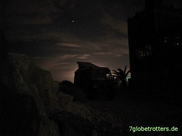 Doch dann kommt ein Bagger angerasselt und reißt die Zufahrt des hinteren Grundstücks auf. Hab mir Spanien zu Ostern irgendwie anders vorgestellt. Heiliger. Aber in der Corona-Zeit ist sowieso alles anders. Und wir stehen gut. Weder die Jogger noch die Polizei stören sich an uns. Hier bleiben wir, klappen aber trotzdem tagsüber lieber das Dach ein. Das sieht nicht ganz so nach doppelt illegalem Camping aus.
