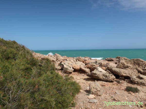 Die Fußwege sind fast schon wieder zugewachsen, und auch die in den Fels gesprengte Grube neben dem Bus wird wohl niemals bebaut werden. Dadurch haben wir nach dem gestrigen Corona-Polizeistress mit den Mossos genau das richtige Maß an Ruhe. Machen Frühstück und spielen lange Skat. Dann schaue ich mal, was ich zum Mittagessen kochen könnte.