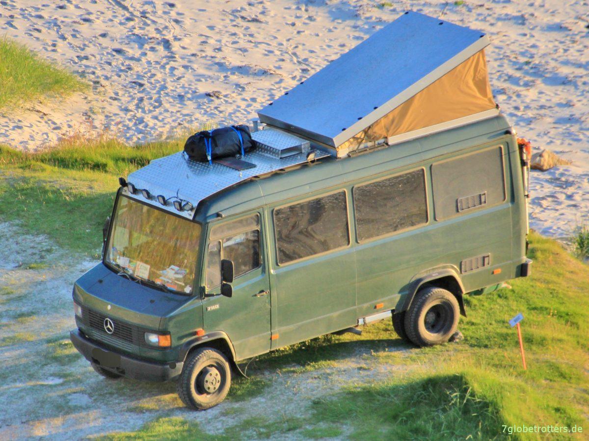 Also ganz ehrlich: Ich weiß nicht, was die Leute immer auf dem Dach wollen. Sieht natürlich auf Instagram cool aus. Aber Instagram ist eher eine Kunstform und hat nicht viel mit der Realität zu tun. Tatsächlich macht so eine Dachterrasse auf Reisen eigentlich keinen Sinn. Aber baut nur. Denkt vielleicht ein wenig ans Gewicht da oben. Manche Dachträger sind schwerer als die Ladung.