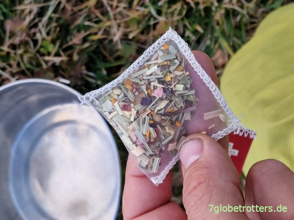 Frauen haben ja auch sonst andere Schwerpunkte. Für diesen Kräutertee hätte ich auch hier oben ein bisschen was von der Alm abrupfen können. Stattdessen hab ich jetzt einen Plastikbeutel, den ich erst den Berg hoch und dann wieder runter schleppen muss. Aber man kann sagen, was man will, der Tee sieht gut aus und schmeckt auch so, wie er aussieht.