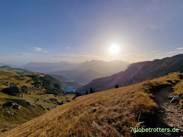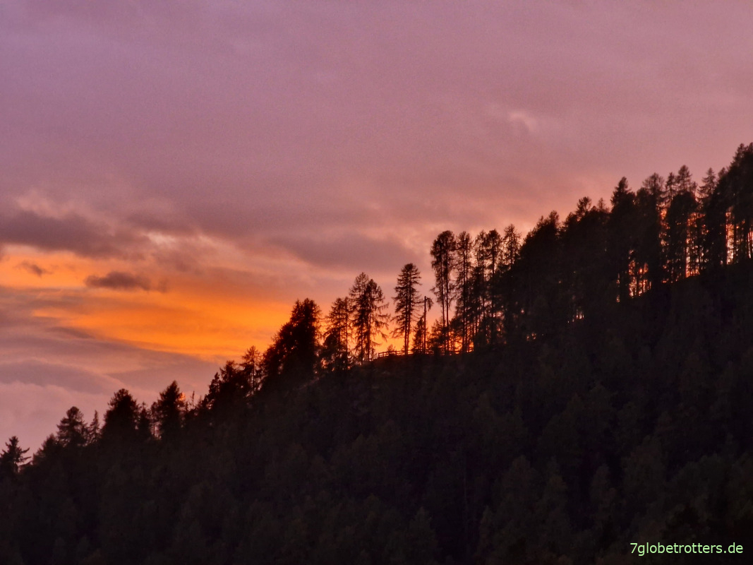 Mittlerweile steht die Sonne schon über der Kreuzkofelgruppe und es scheint ein schöner Tag werden zu wollen.