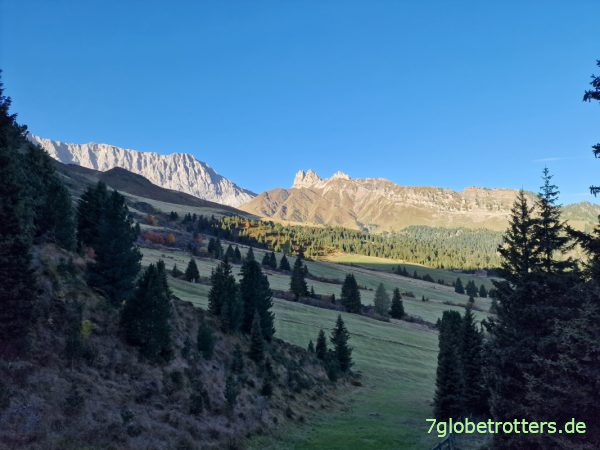 10:00 Uhr allerdings kommt die Sonne rum und die Seiser Alm zeigt sich von der besten Seite. Hier braucht man wirklich weder Bergschuhe noch Bergausrüstung.