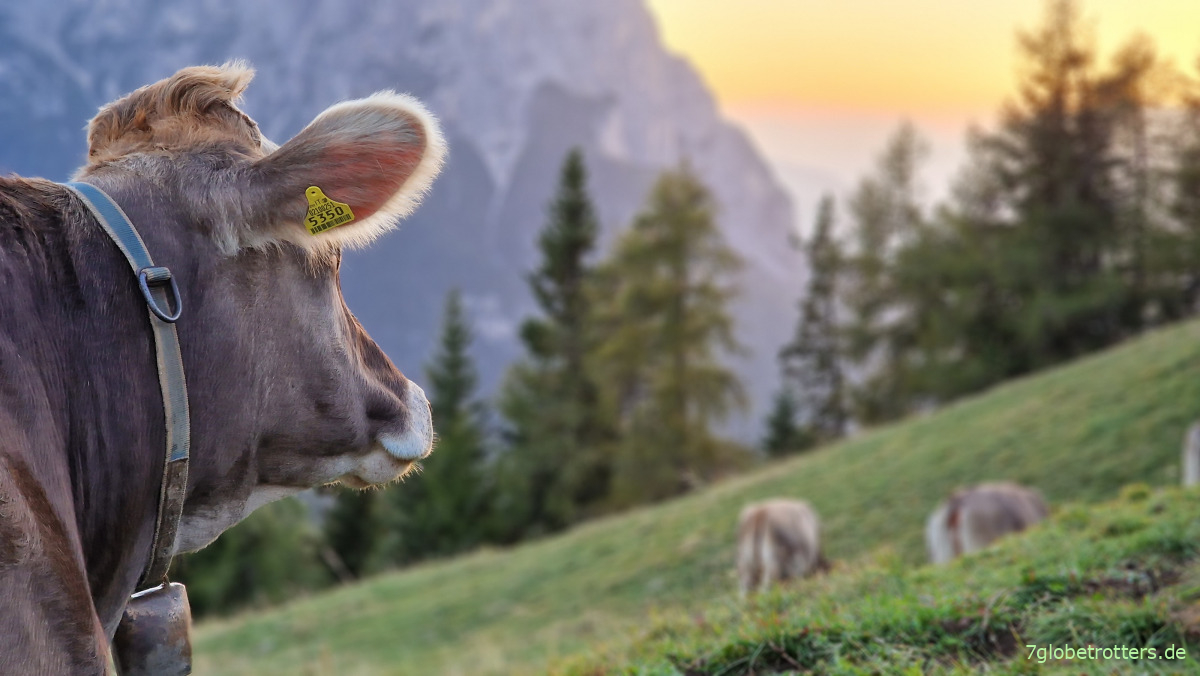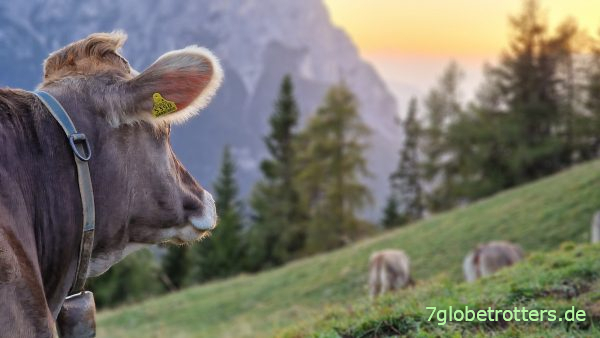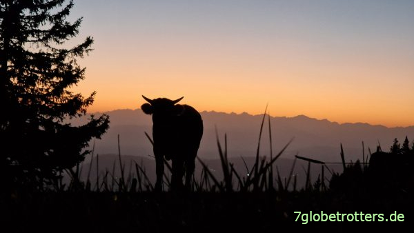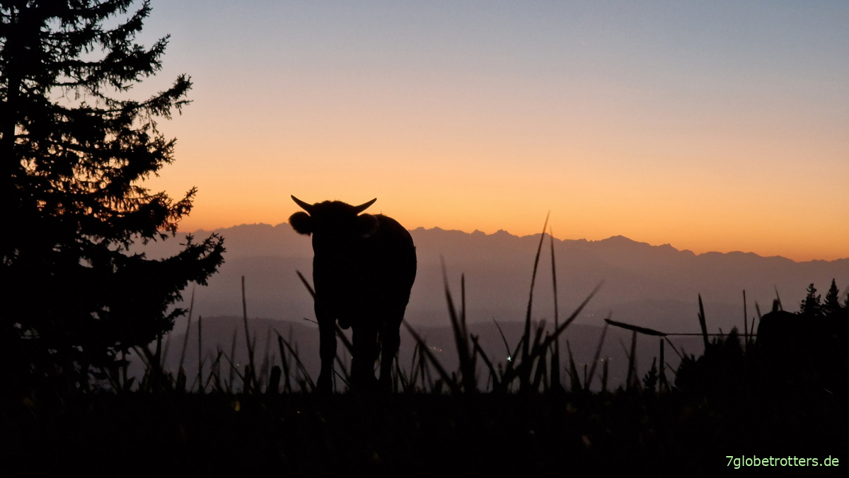 Selbst die Kühe kommen jetzt von unten aus dem Tal hoch und stehen da, als ob auch sie die untergehende Sonne bewundern. Und ich bin mir ganz sicher, dass sie das auch wirklich tun.