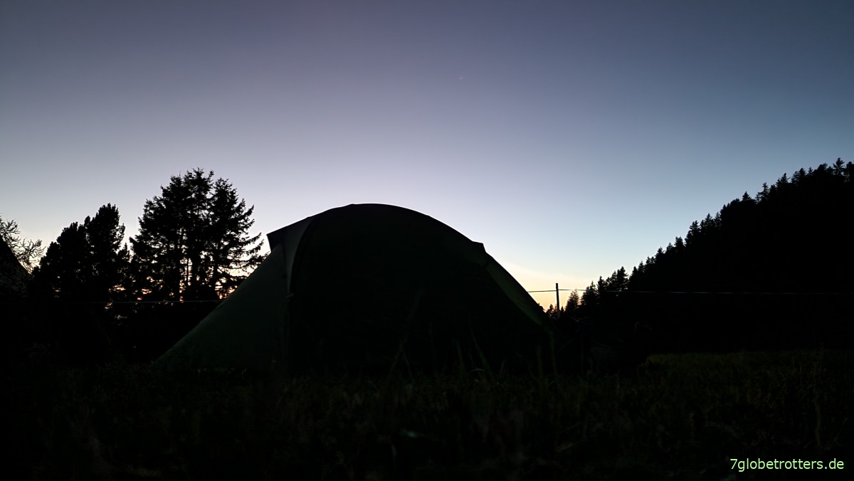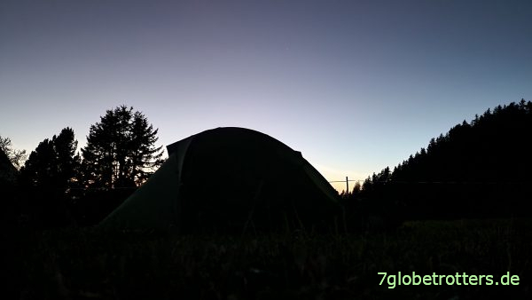 Die Nacht auf der kleinen, schrägen und buckligen Lichtung im Wald war schlimmer als befürchtet. Zum Glück aber betrafen die Missstände im Untergrund nur meine Schlafposition. Da muss man eben mal die Zähne zusammenbeißen.