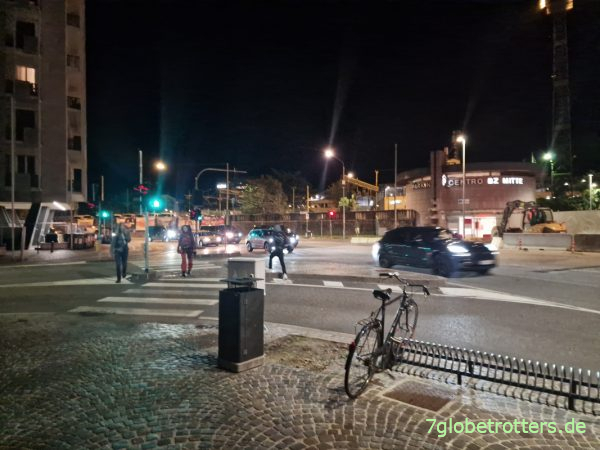 Auf dem Brenner wird mitgeteilt, dass Italien wieder mal streikt und es völlig unklar ist, ob und wohin der Zug überhaupt noch fährt. Aber mit etwas Verspätung rollt die Bahn schließlich doch an und wir erreichen Bozen um 22:20 Uhr. Am Bahnhof Bozen sind alle Toiletten verrammelt, also hole ich Trinkwasser beim Inder. Jetzt erst sind wir richtig beladen.
