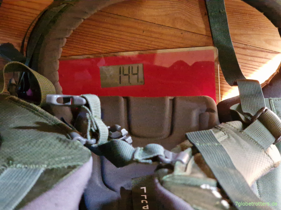 Aber zum Glück verteilt sich das Gepäck recht gleichmäßig auf 3 Schultern.