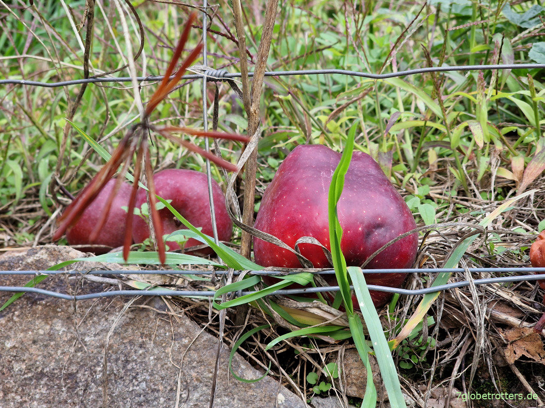 Und manchmal rollen ein paar süße Äpfel von den Plantagen runter zum Weg. Lecker.
