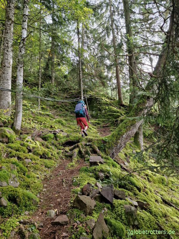 Erst ab der Haselburg wird es ruhiger, aber auch steiler.