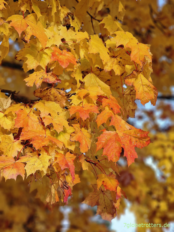 Zwei Kneipen schicken uns zum Sportplatz, und dort frage ich den Wirt gar nicht erst, ob er etwas zu essen hat, sondern was er drei kurz vor dem Verhungern stehenden Wanderern um diese Kaffeekränzchenzeit anbieten kann. Der gute Mann hat Mitleid und macht drei Portionen Bratkartoffeln mit Hühnerbrust und Bohnen im Speckmantel. Dazu Krautsalat und einen großen Brötchenkorb, der auch leer wird. Ich danke es ihm mit reichlich Trinkgeld und treibe alle weiter durch die herbstlichen Wälder.