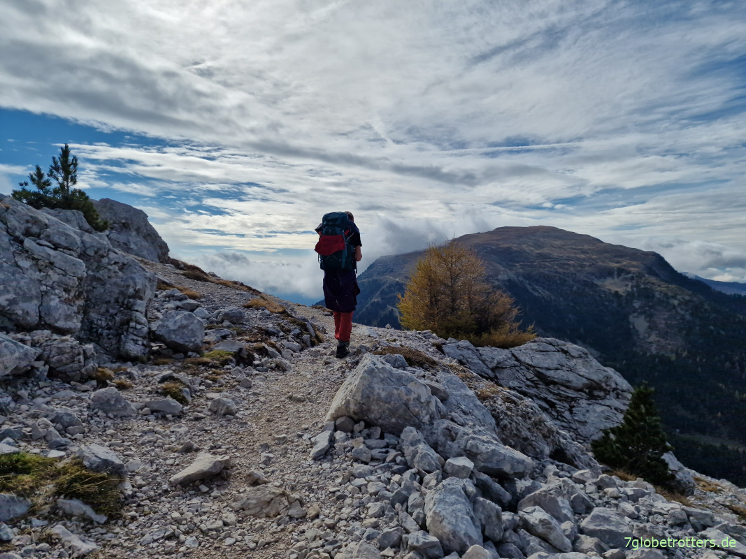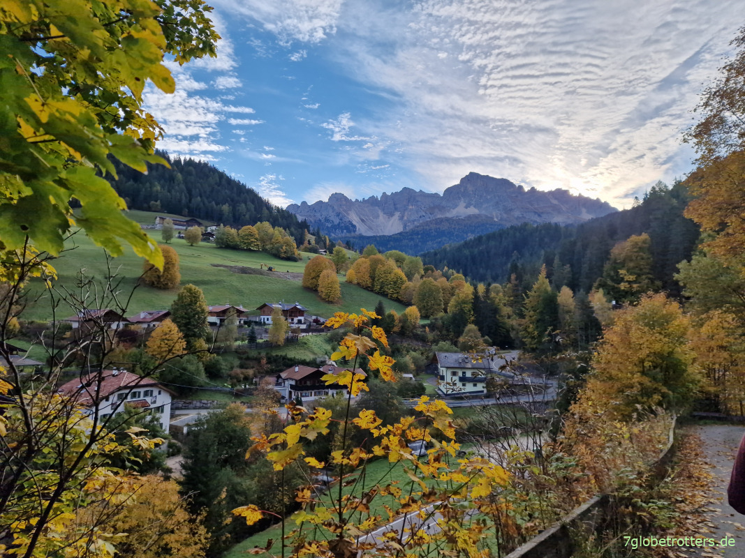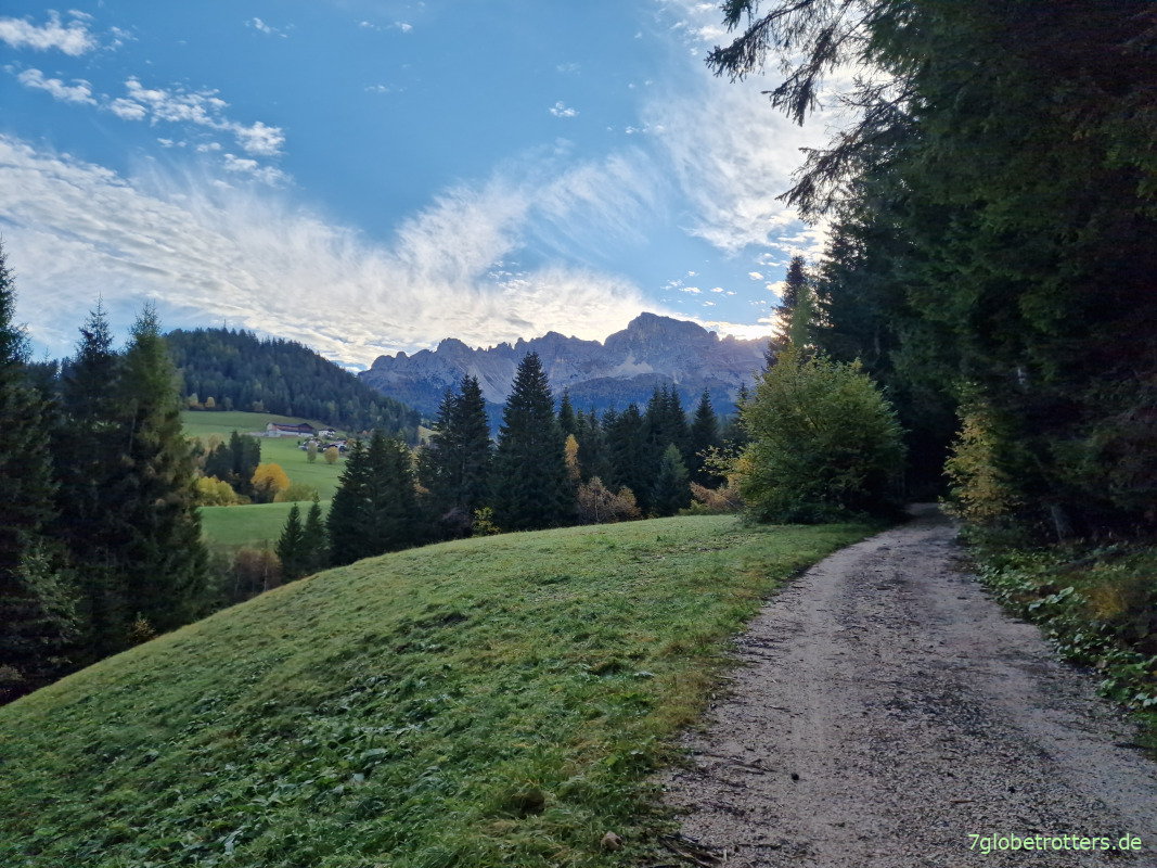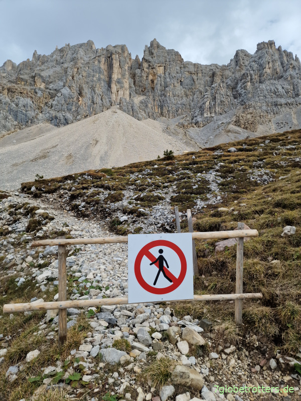 Der eigentlich angedachte Weg hoch auf das Latemar ist gesperrt. Wer weiß, was da wieder los ist. In den Dolomiten fällt eben ständig irgendwo irgendwas runter. Der ganze Klimbim ist doch völlig porös und will wieder zurück ins Meer.