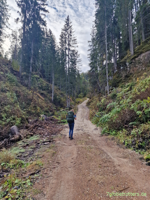 Endlich geht’s in den Wald und auf einem schönen Weg steil hoch.