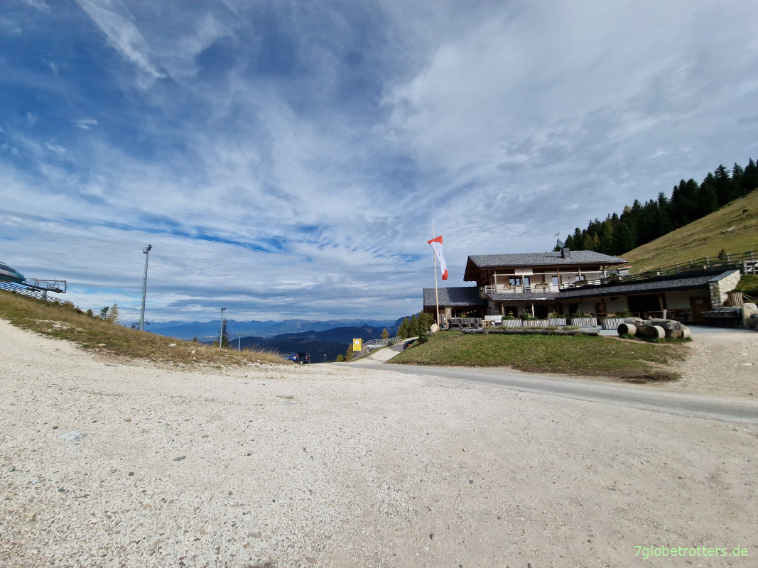 16:10 Uhr sind nach 8 Stunden die 1.431 m Anstieg hoch aufs Latemar geschafft. Eine heiße Schokolade und ein Kaiserschmarrn wären jetzt echt super.