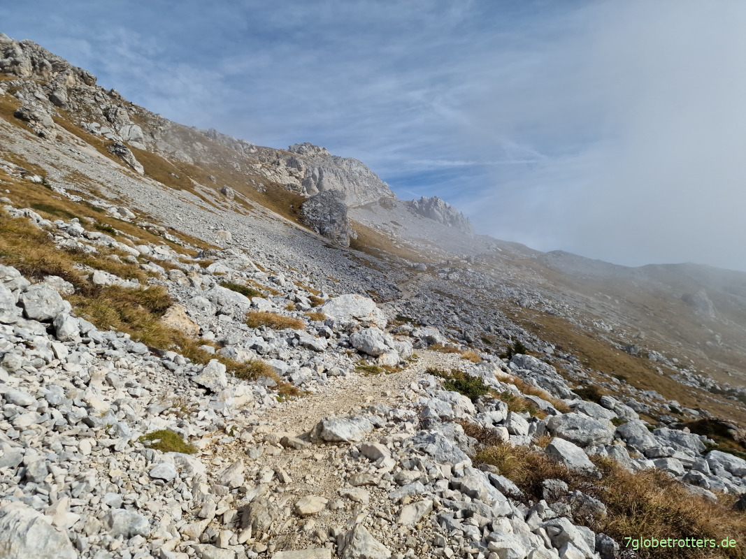 Müssen also erstmal ein Stück auf halber Höhe um den Berg herumlaufen.