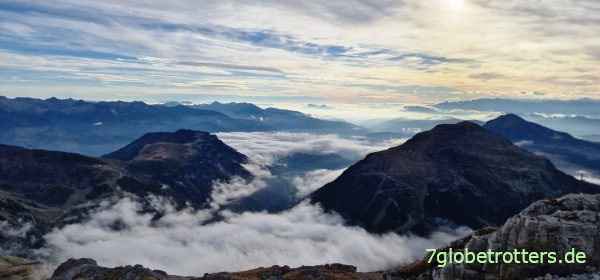 Dazu füllt eine dichte Wolkendecke langsam die Täler ringsum.
