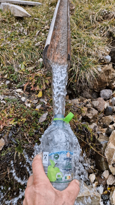 Aber wenigstens gibt es genug Wasser. Hier kommt schon fast zu viel. Weiter oben im Latemar wird es trocken, also müssen wir ab jetzt 6 Liter Wasser zusätzlich schleppen. Dafür sparen wir Gewicht an den Trinkflaschen. Ich verstehe wirklich nicht, warum jemand „richtige“ Trinkflaschen kauft, wenn die schwerer, teurer und dümmer zu reinigen sind als eine einfache Pfandflasche im Umlauf. Aber jeder wie er mag.