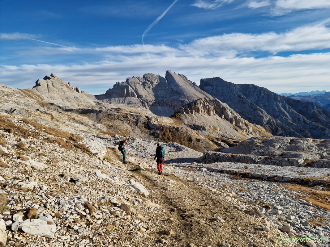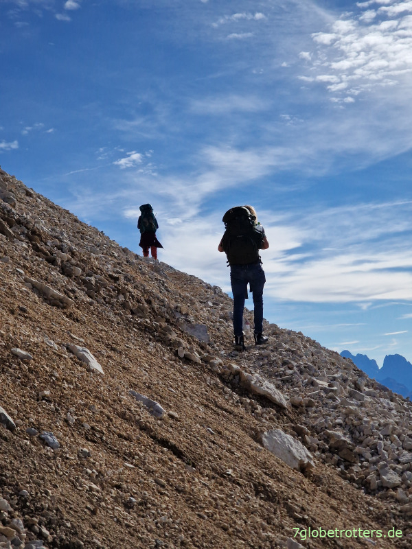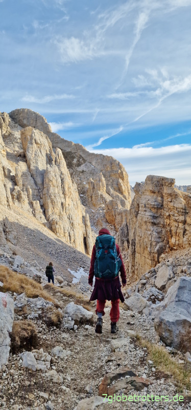 Ab der kleinen Latemarscharte fängt das Teilstück mit dem Schotter an. Runter ist das auch kein Vergnügen, zumal es immer noch 800 Höhenmeter sind.