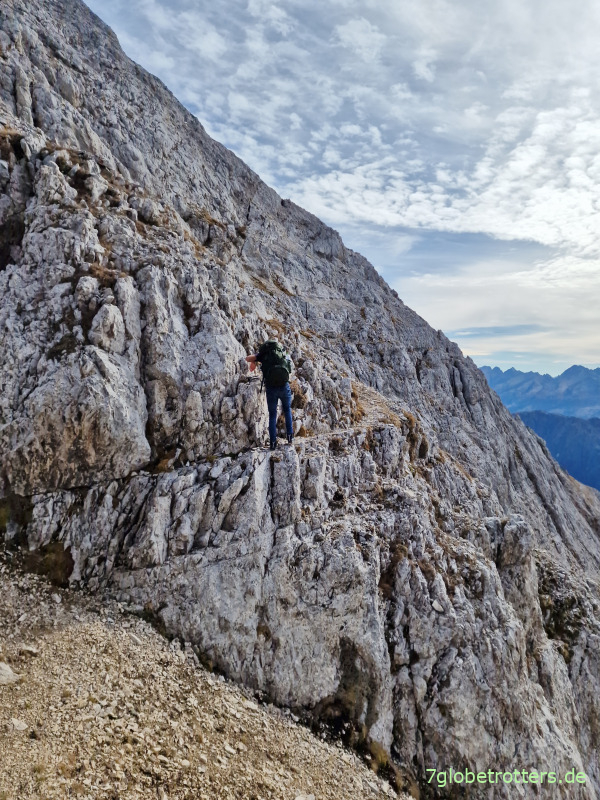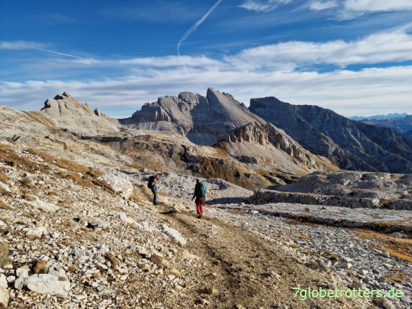 Und es gibt auch einige dumme Passagen. Aber hier bin ich 2011 mit 3 Kindern in der Gegenrichtung durch, das motiviert. Trotzdem brauchen wir drei Stunden. Erst dann stehen wir an dem (familienintern) berühmten Blechbiwak vor der hohen Latemar-Wand zur östlichen Latemar-Spitze.