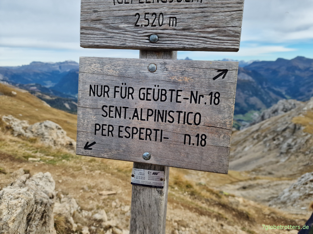 Hab für den Weg überhaupt keine Probleme in Erinnerung, sondern bin 2011 mit 3 Kindern einfach hochgelaufen. Aber da muss ich der Kritik meiner Wanderleitung mal recht geben: Runter ist der Weg vom Latemar zum Karerpass wirklich beschissen. Denn es gibt einige steile, ungesicherte und durchaus gefährliche Passagen.