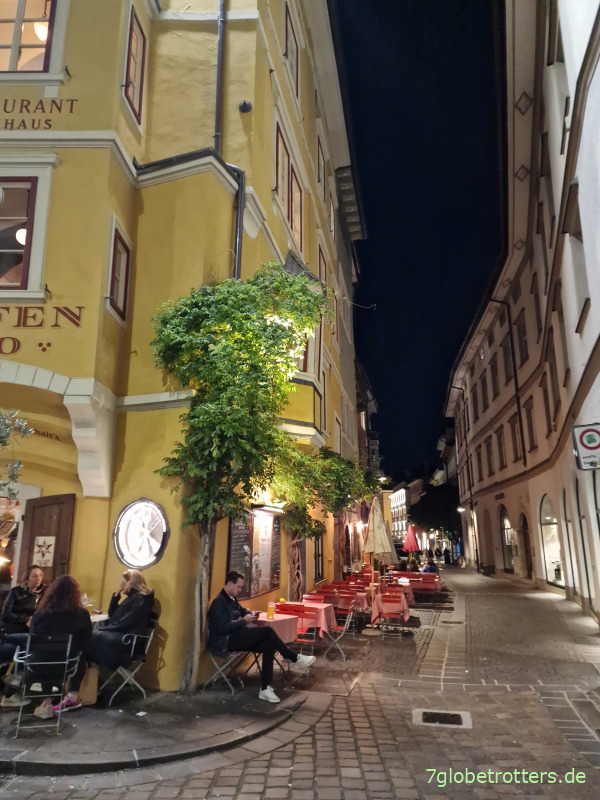 Am Abend gehen wir zur Feier des Tages kreuz und quer durch die hübsche Altstadt von Bozen.