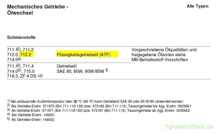 Beim richtigen Getriebeöl für den Mercedes T2N kannst du den richtigen Glauben nur selbst finden. Aber die Abbildung oben aus dem Werkstattinformationssystem ist für das Baumuster 715 eindeutig.