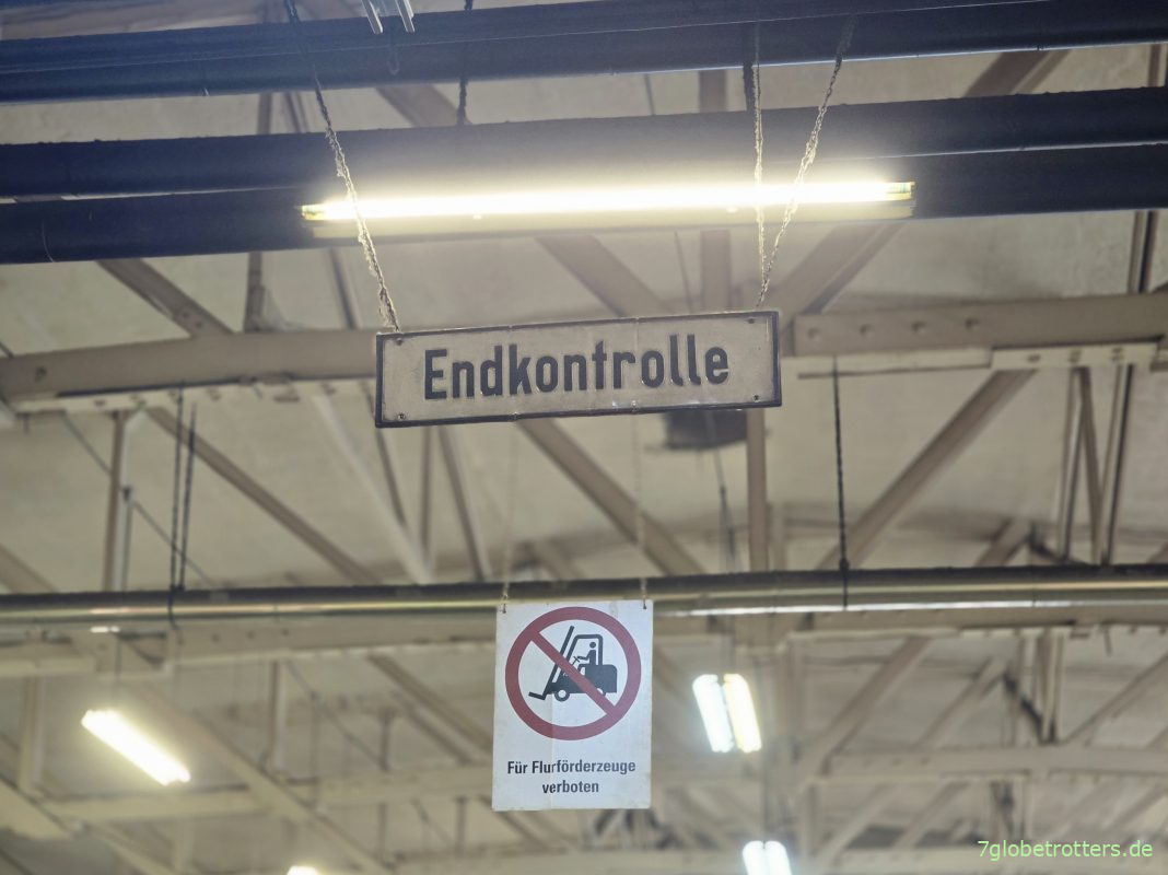 Heute beeindruckt mich der Enthusiasmus der Mitarbeiter. Die Rundgangsleiterin zum Beispiel hat privat 4 Motorräder. Oder waren es 5? Jedenfalls krass viel. Und in jeder Ecke hängen statt Pin-ups Motorradkalender. Konnte allerdings nur ein Foto im Laufen machen. Hoffe, man erkennt nichts von den Qualitätssicherungsprotokollen. Aber ganz links ist das Datum markiert. Nur damit man sieht, dass Besichtigung und Beitrag wirklich vom selben Tag sind – ein echtes Novum.