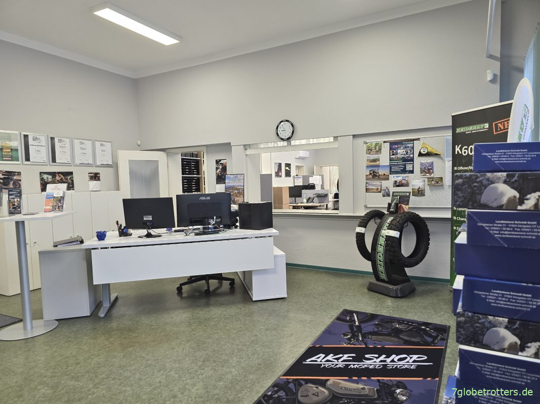 Die Reifenwerkstatt im Allerheiligsten ist schon bereit. Wenn nur das Aufziehen der neuen Winterreifen auf der BMW 100 GS auch so schnell gehen würde wie dieser Bericht aus dem Heidenauer Reifenwerk.