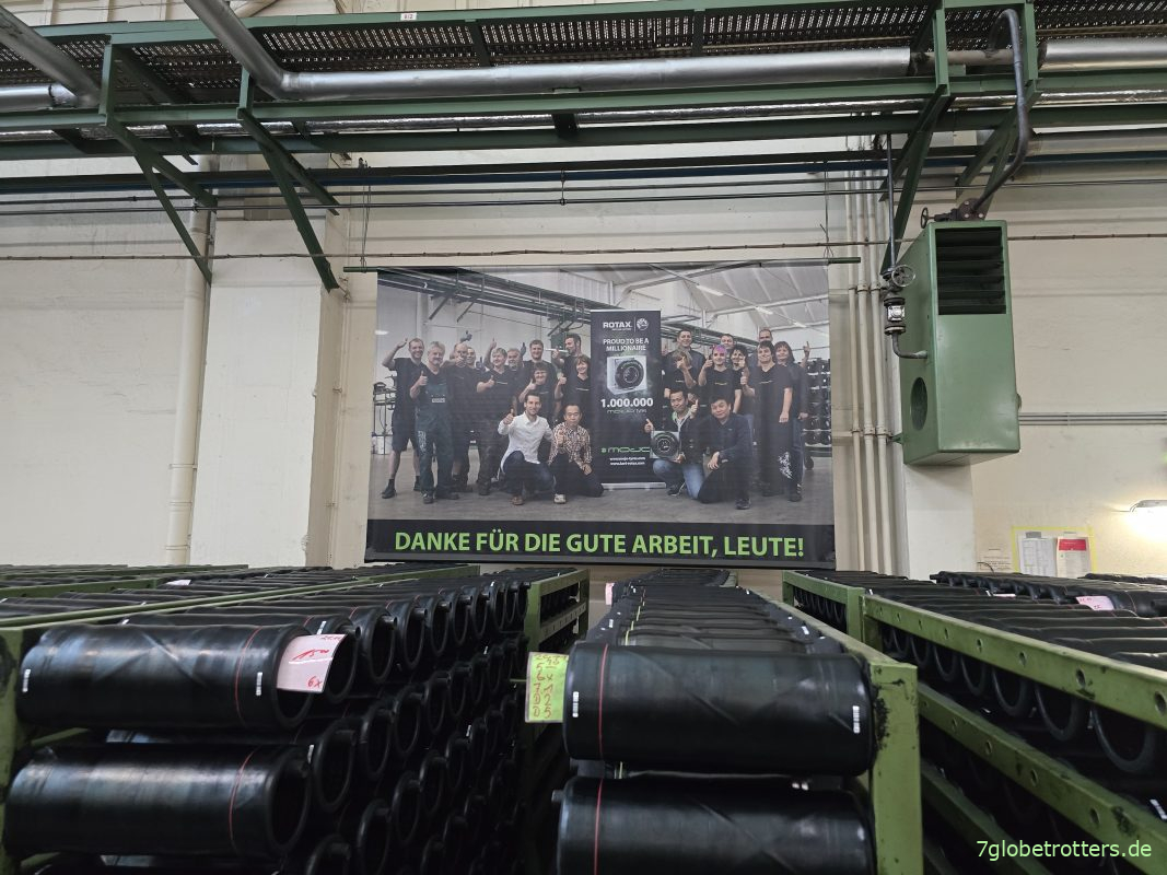 So ein Reifenwerk ist ja keine Maschine, in die man oben irgendwo Gummi reinkippt und unten purzeln die Reifen raus. Nein, das sind ewig lange Bänder und Produktionslinien und Maschinen, an denen echte Menschen echte Arbeit leisten.
