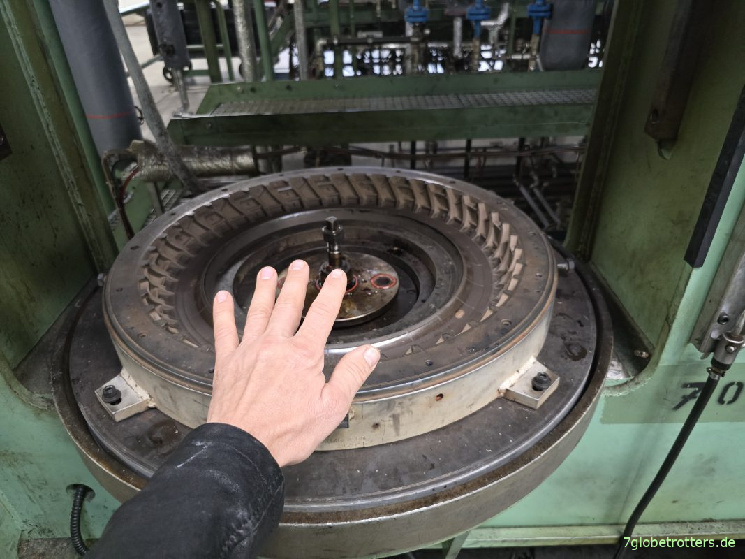 Und jeder von diesen Männern und Frauen legt für seinen Reifen die Hand ins Feuer. Jeder Reifen hat nämlich eine geheime Kennzeichnung, aus denen sich Typ, Maschine und Bediener identifizieren lassen. Aber es gibt wohl so gut wie keine Reklamationen.