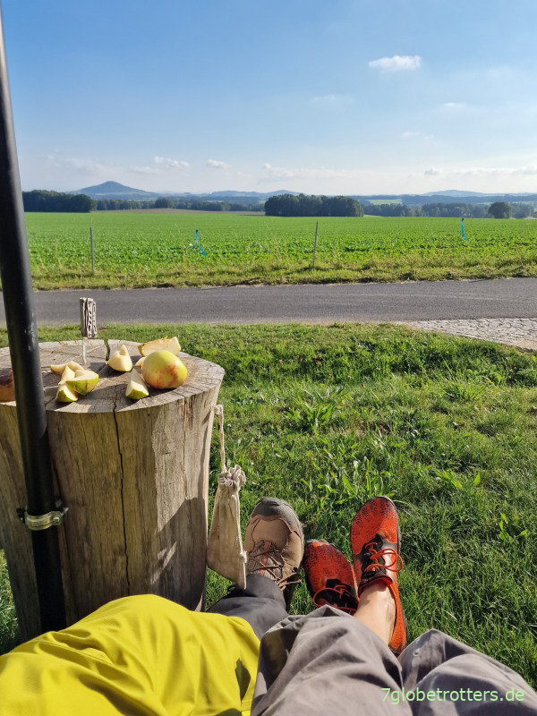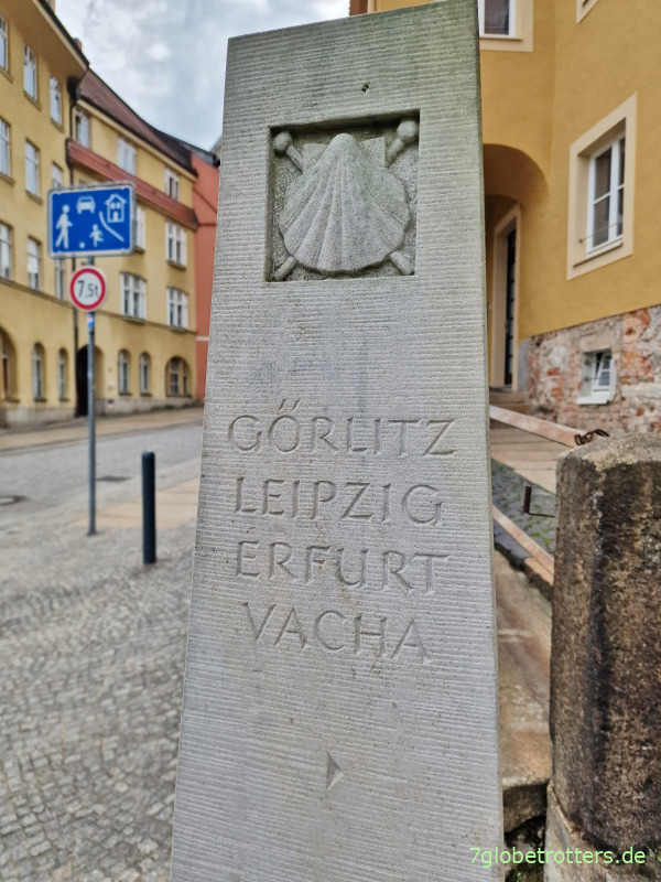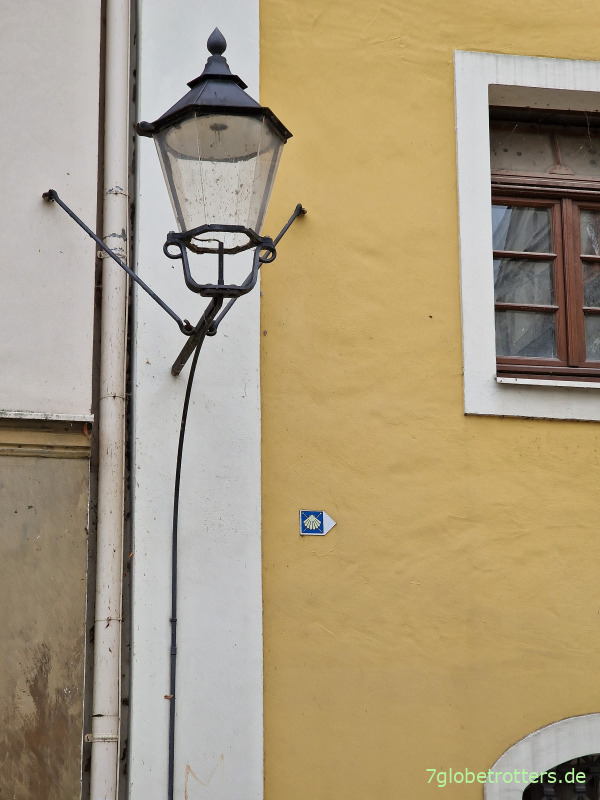 Und ja, ich versuche, meinen Kopf auszuschalten und nicht immer alles exakt zu planen, zu koordinieren und zu kontrollieren. Hab zwar sicherheitshalber einen GPS-Track auf dem Handy, aber schon ab Görlitz ist der Jakobsweg absolut sauber ausgeschildert. Überall kleine Muschelsymbole an den Schildern, Hauswänden oder Säulen.