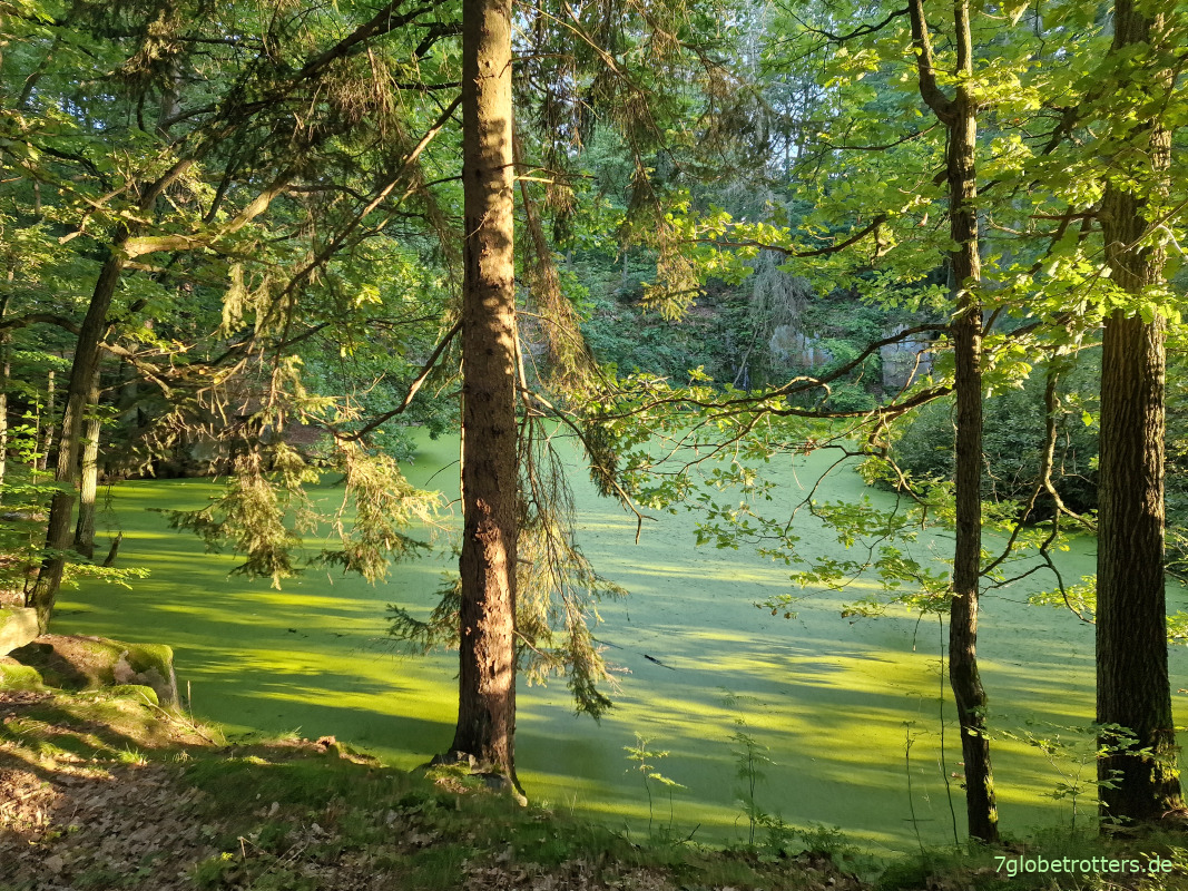 Aber der erste Steinbruchsee ist nur Entengrütze und verheißt nichts Gutes. Wobei das ja eigentlich nur eine Kopfsache ist. Unter dem Grünzeug ist sicherlich feinstes Wasser.