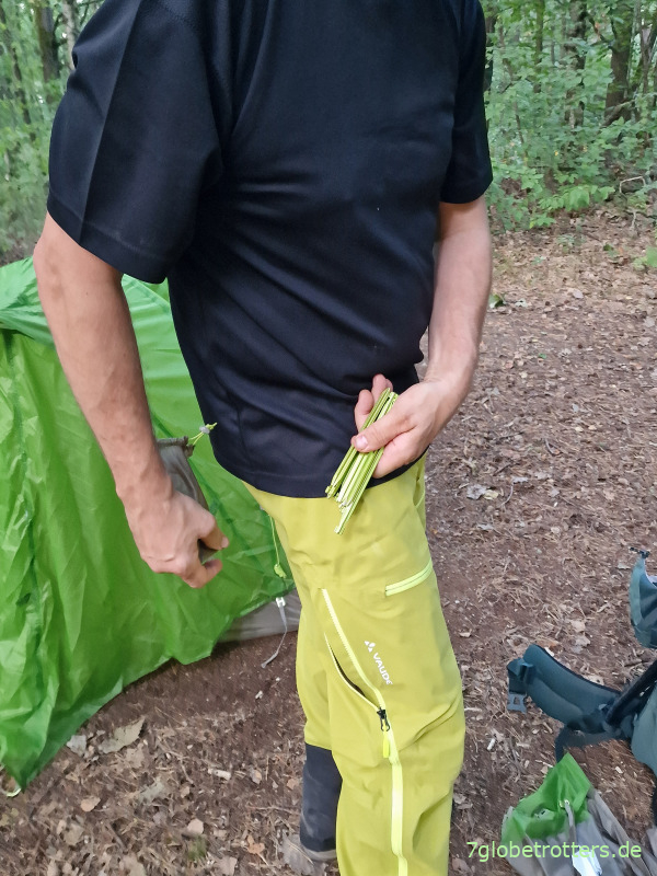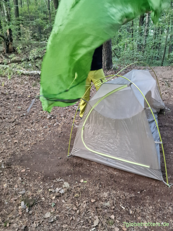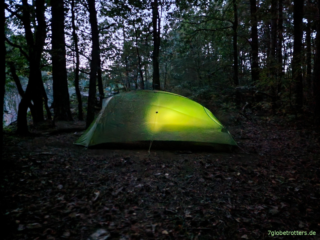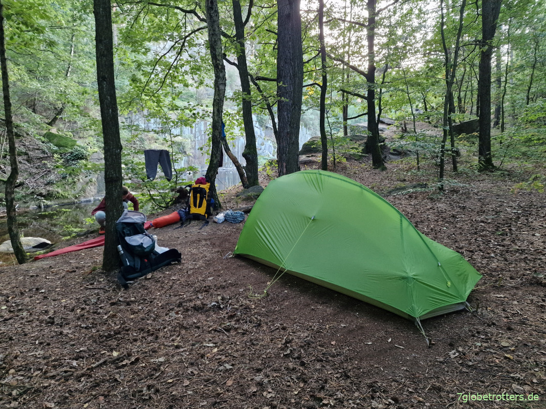 Finde dann doch einen Zugang zum Wasser, befreie ein Stück Waldboden von Kienäpfeln und baue das Schlafzimmer auf. Allerdings ist das Vaude Hogan SUL mit nur 1,2 kg zwar super leicht, aber auch super klein.