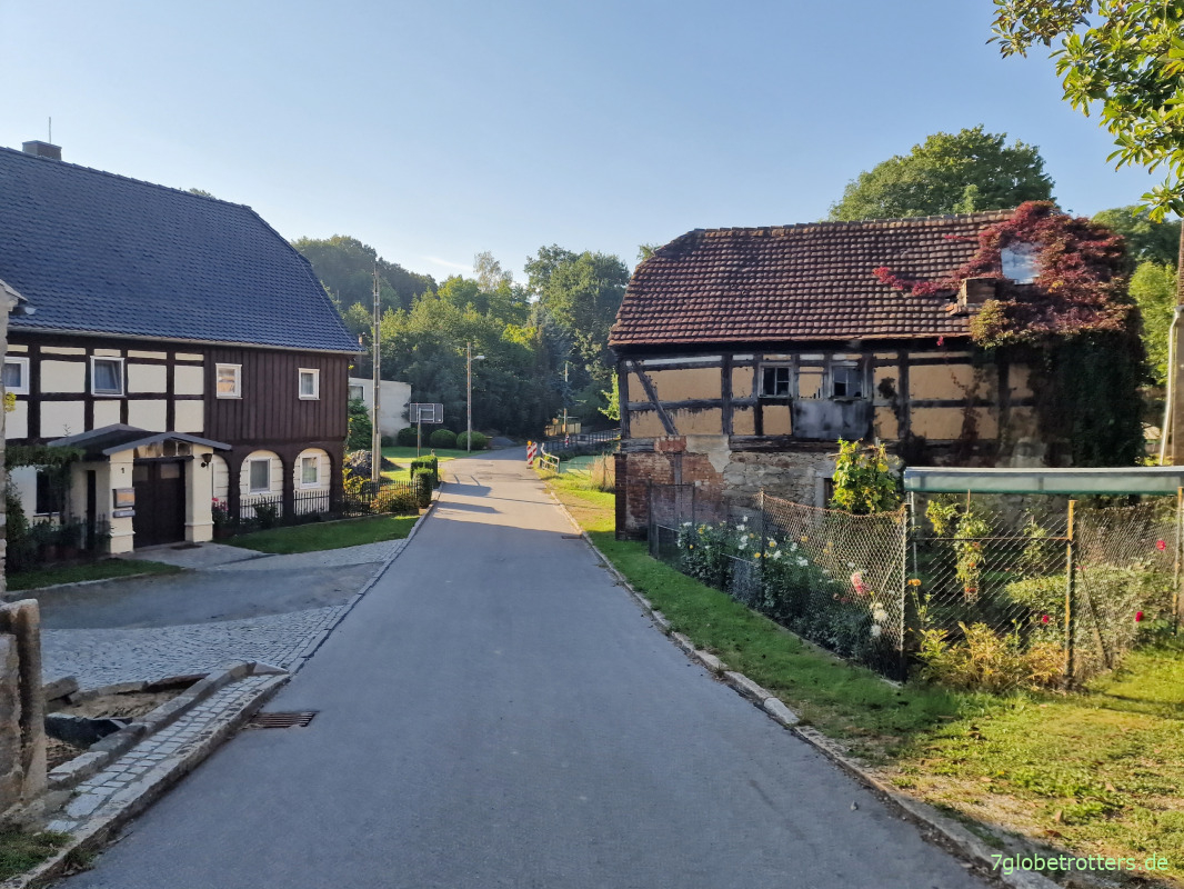 So sitzen wir da, schauen auf die hügelige Landschaft mit den fließenden Horizontlinien und lassen es uns gut gehen. Dann über die ausgestorbene Landstraße nach Drehsa. Klar, die Kinder sind alle im Kindergarten, die Eltern auf Arbeit und der Bus ist auch gerade durch. Wer soll hier also Auto fahren?