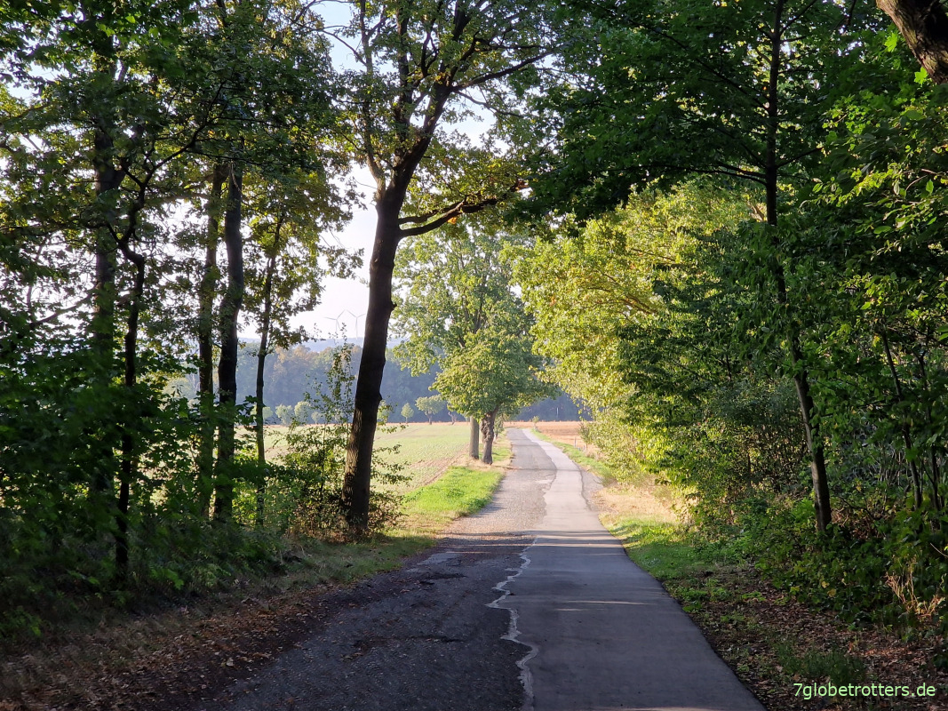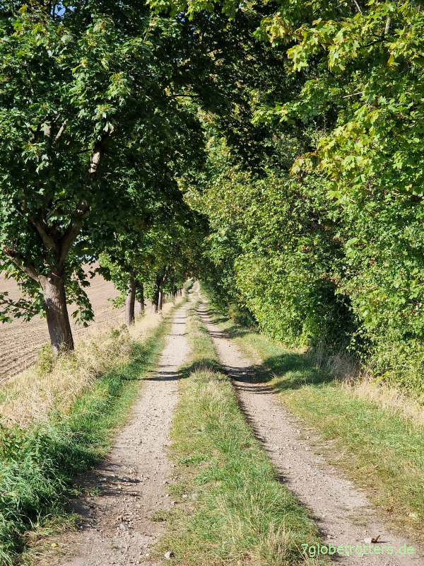 Die Drehsaer Schweiz ist schnell durchwandert und wir schwenken wieder auf den Hauptweg ein, der hier eine Allee voller Äpfel und Birnen ist. Danke für die schnurpsige Obstversorgung.