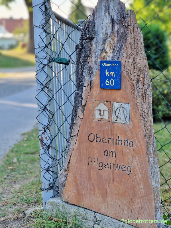 Dann über eine steile Treppe runter zu Spree. An der alten Brücke treffen wir wieder auf den Jakobsweg, der sich hier teilt. Wir wollten ja erst über Dresden und Chemnitz nach Hof gehen. Aber das ist irgend so ein neumodischer Weg. Der richtige Jakobsweg führt wie die alte Via Regia über Kamenz, Großenhain, Leipzig, Erfurt und Eisenach nach Vacha. Und es ist seit Görlitz völlig klar, dass wir diesen Weg gehen.