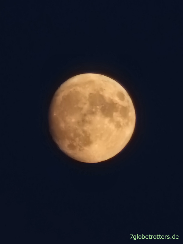 Aber ich will sagen, dass gegenüber im Osten um 18:45 Uhr der Mond aufgeht. Wie eine Waage sind beide miteinander verbunden. Auf dem Foto sieht man übrigens nicht nur das 1,2 kg leichte Hogan SUL, sondern auch die beiden superbequemen Winter-Luftmatten, die nebeneinander gerade so ins Zelt passen. Als ob das Vaude so vorgesehen hätte. Besser wäre natürlich eine einzelne, überbreite Isomatte. Aber das ist wahrscheinlich auch komisch, wenn man da zu zweit drauf liegt und einer sich bewegt, während der andere schlafen will.