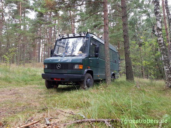 Hätte zwar auch direkt auf den Strand fahren können. Habe ja die Sandbleche dabei. Aber da scheint ziemlich viel Fahrbetrieb auf dem Strand zu sein. Nicht, dass ich genau im Weg stehe. Dann doch lieber im Wald.