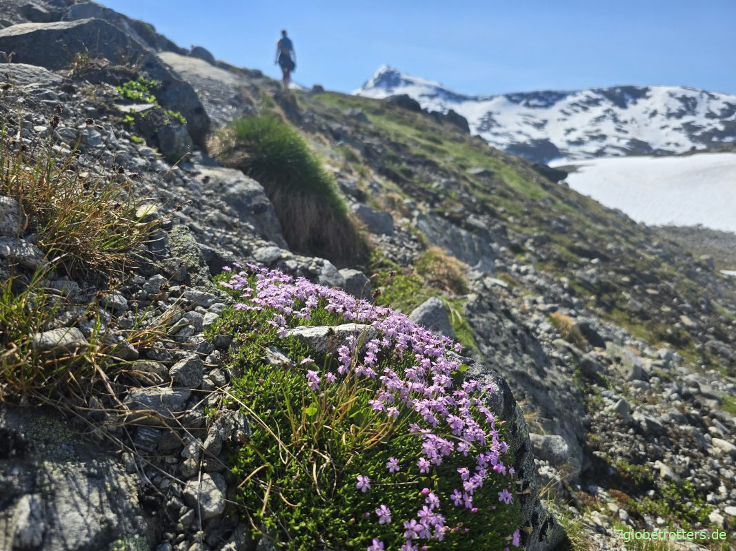 Und trotz der vereisten Bergseen sind heute bestimmt 20 Grad Celsius.