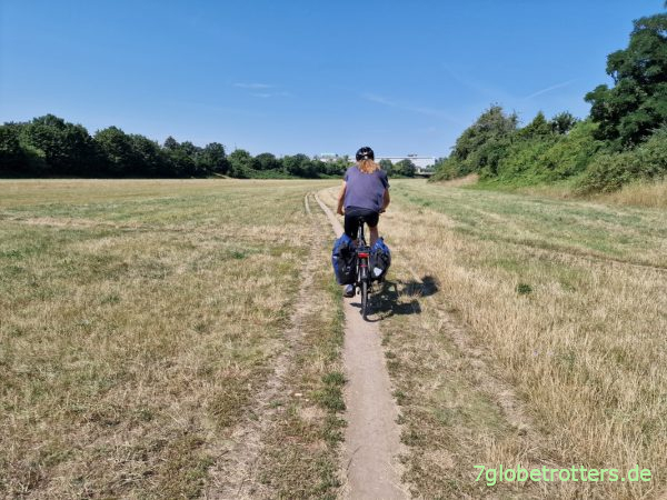 Kurze Irritation an der Flutrinne. Aber ja, wir fahren natürlich die „Offroad-Geheimpiste“ durchs Gemüse und nicht die Touri-Strecke über den Elbradweg.