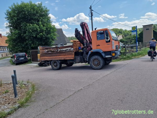 Wir machen ein Päuschen und radeln auf unbelebten Straßen weiter durchs Döbelner Bergland. Halte nur ganz kurz für den MAN L2000 an. Da kann ich nicht vorbeifahren.