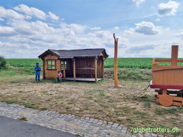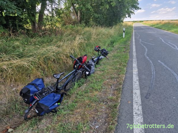 Danach verspeisen wir hinterm Netto gleich an Ort und Stelle den gesamten Einkauf. Von Leisnig sind es noch 40 km bis zum Ziel am Harthsee. Aber es rollt. Außer wenn ich so einen schönen Weh Fufftzsch sehe.