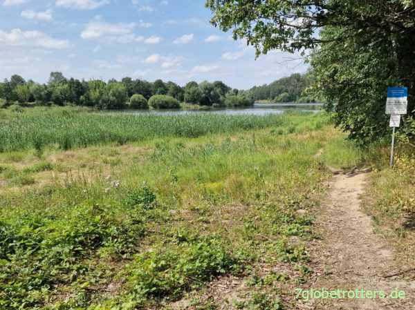 In Altkaditz will ich die Sache mit dem Lehmhaus erzählen, aber selbst mein Jüngster kennt nun schon so langsam alle meine Geschichten. Komme also über die ersten Worte nicht hinaus. Klar, auch die Radtour die Elbe runter ist er schon ein paar Mal gefahren. Aber heute sind wir schon nach einer Stunde an der Kiesgrube Coswig. Die 25 km waren früher mit kleinen Kindern eine (schöne) Ganztagesradtour.
